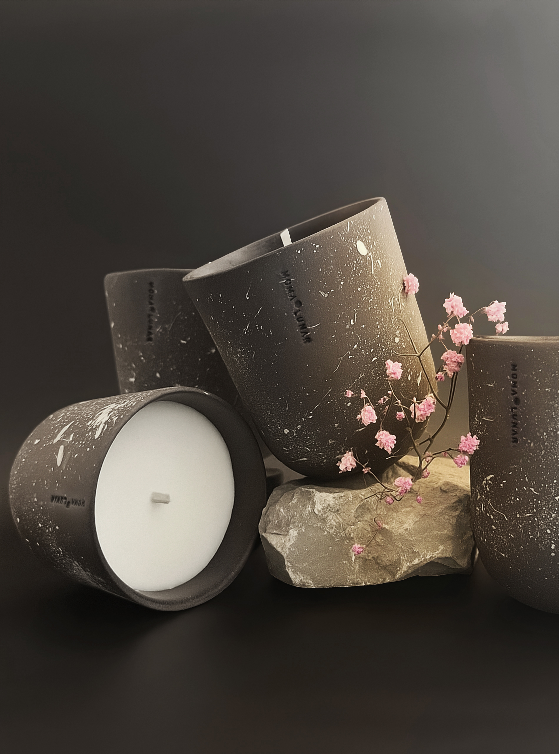 Świeca z wosku sojowo-rzepakowego, z naturalnym knotem z niebielonej bawełny, z odrobiną starannie wyselekcjonowanych olejków zapachowych, zgodnych z certyfikatem IFRA – stworzona tak, by było pięknie i bezpiecznie.